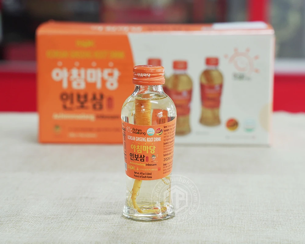 Nước sâm nguyên củ Achimmadang chứa nhân sâm Hàn Quốc hơn 3 năm tuổi, được nhập khẩu chính hãng, kết hợp với nhiều dược liệu khác, rất tốt cho sức khỏe người dùng.