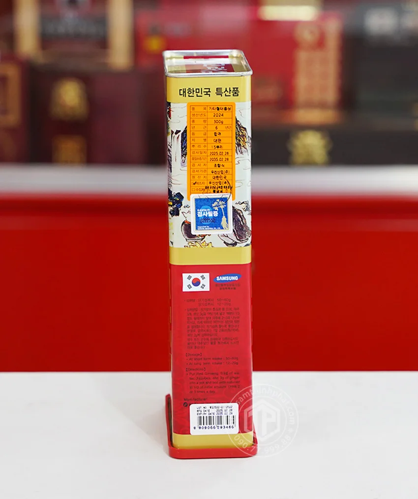 Hồng sâm củ khô hộp thiếc Bio 300g Chính hãng Hàn Quốc được chế biến từ những củ nhân sâm tươi 6 năm tuổi, qua quá trình chế biến lên hồng sâm dược chất saponin trong củ hồng sâm cao hơn nhiều so với nhân sâm tươi.