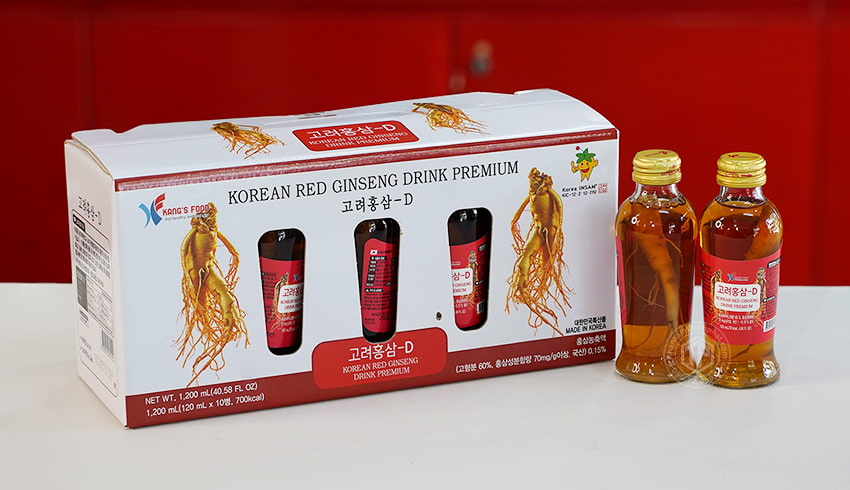Nước hồng sâm Hàn Quốc chính hãng Kang's Food hộp 10 chai có củ sâm tươi