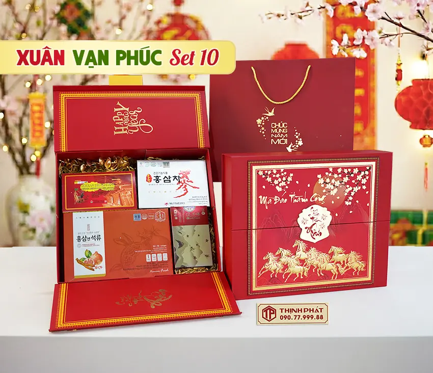 Với giá bán chưa đến 2 triệu đồng cho một hộp quà có từ 4-5 sản phẩm bên trong từ hồng sâm cao cấp, chính hãng Hàn Quốc, Xuân Vạn Phúc luôn là lựa chọn được nhiều khách hàng yêu thích khi đến với Thịnh Phát trong dịp Tết 2026.
