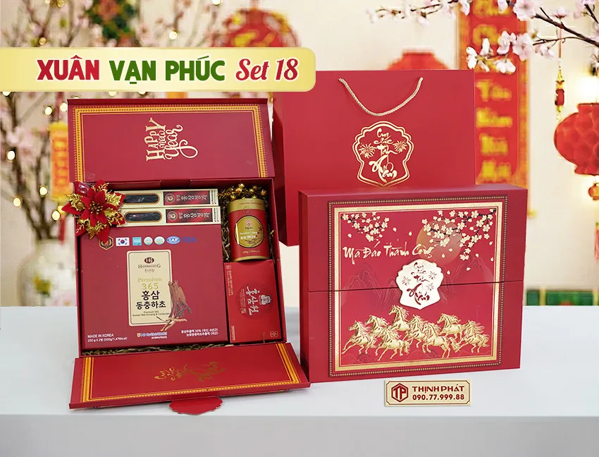 Hộp quà Tết Xuân Vạn Phúc set 18 gồm các sản phẩm: