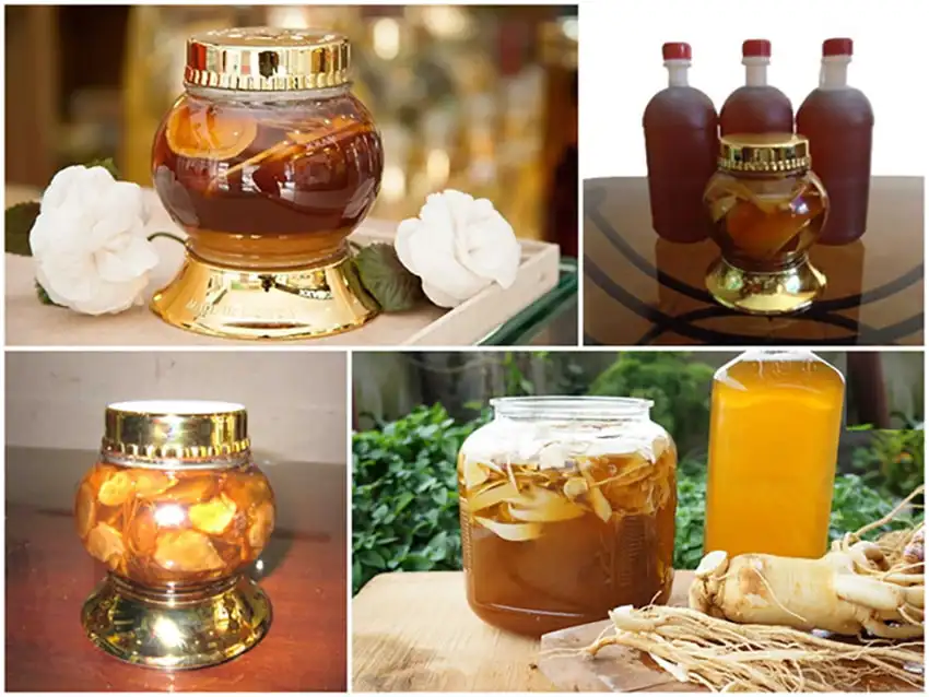 ➢ Nhân sâm ngâm rư.ợ.u: dùng rượu nếp ngâm sẽ thơm ngon hơn, có thể ngâm chung với linh chi, táo đỏ, kỷ tử