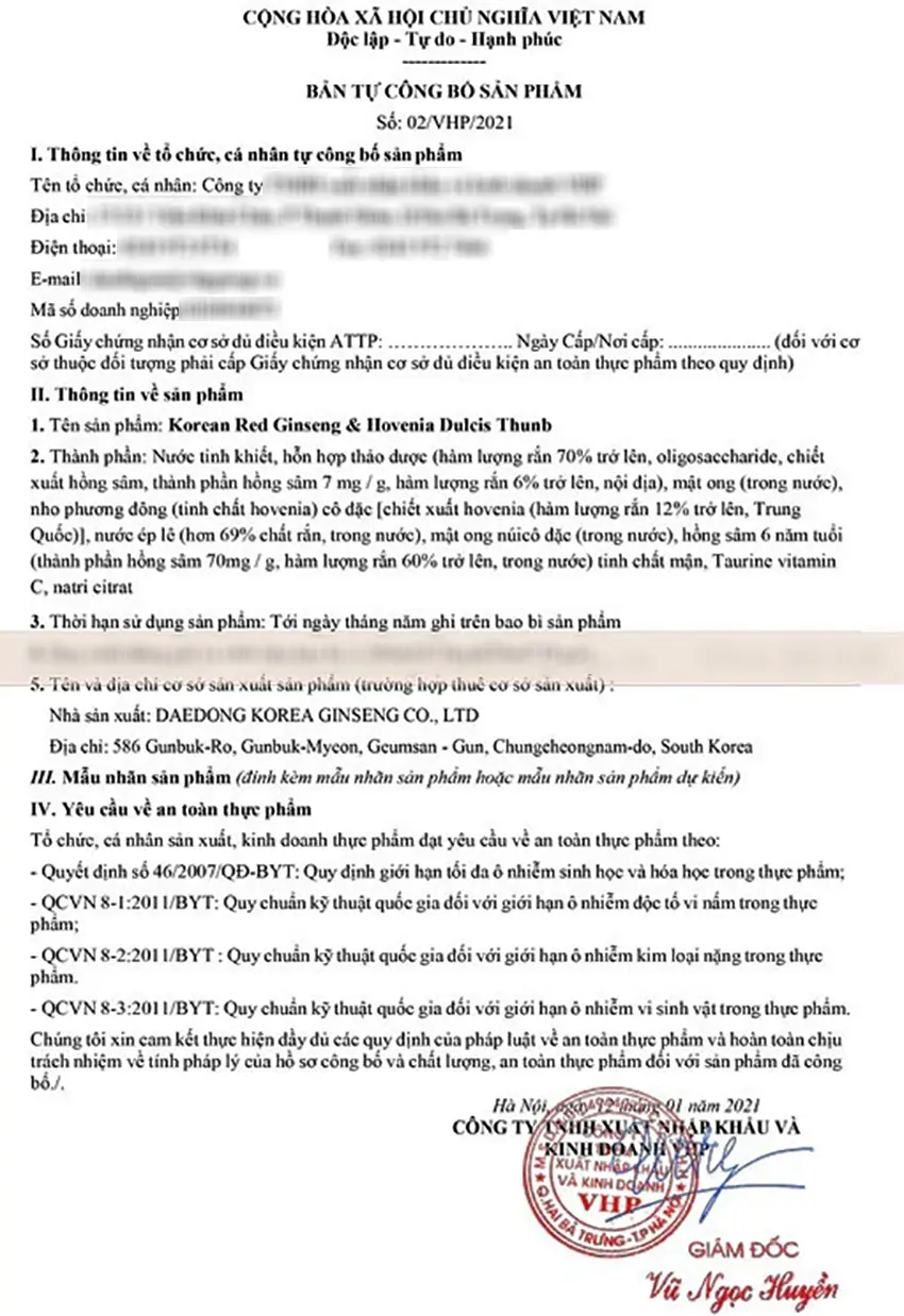 Thông tin nhà sản xuất: Daedong Korea Ginseng co.,Ltd, địa chỉ: 586 Gunbuk-ro, Gunbuk-myeon, Geumsan, Chungcheongnam-do, Hàn Quốc.