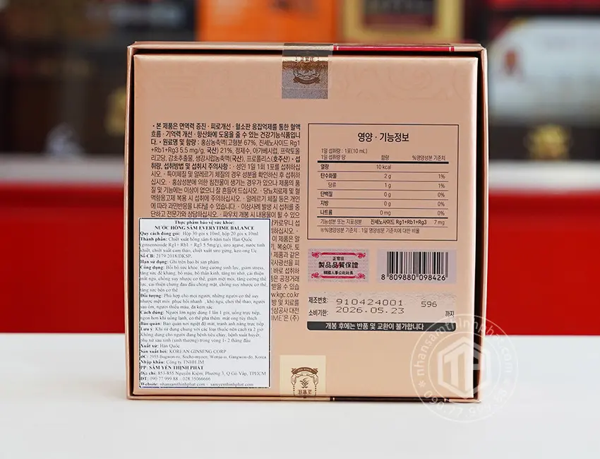 Thành phần của nước hồng sâm Hậu Duệ Mặt Trời sâm chính phủ Hàn Quốc KGC Cheon Kwan Jang: